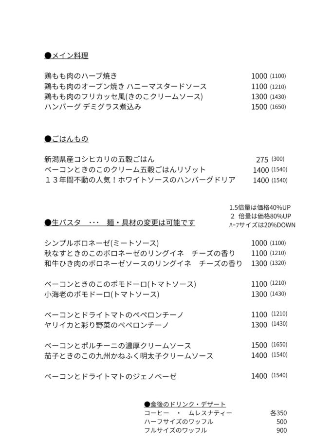 よつ葉CAFEでは、ディナータイムは基本的にスタッフ一人で対応させていただいております。