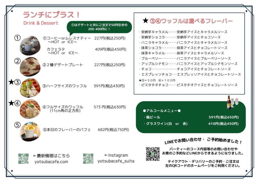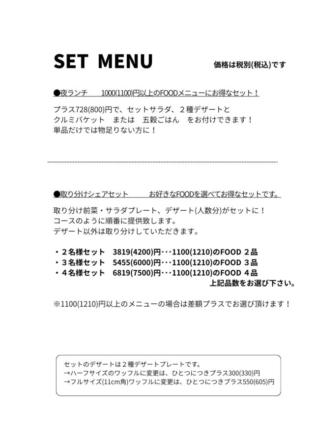 カフェメニューはこちら↓(基本的にドリンクとデザートのセットになります)
