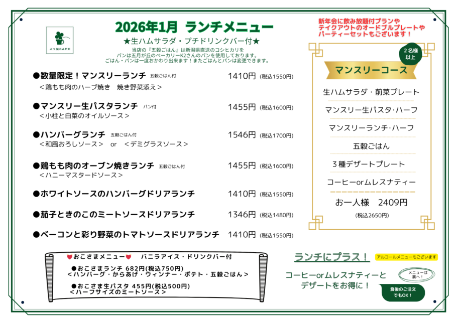 2026年1月のLUNCH MENU